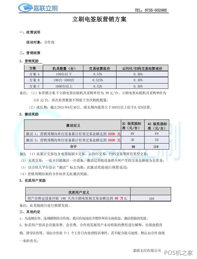 立刷電簽POS機(jī)費(fèi)率