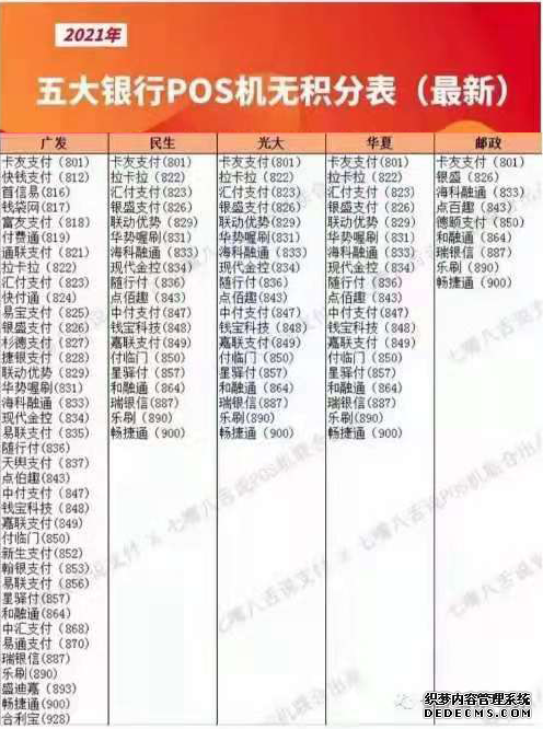 5、郵政銀行,沒有積分的包含,暢捷通,樂刷,卡友,銀盛,??迫谕?,點(diǎn)佰趣,和融通,瑞銀信,盛付通依舊有積分,所以由此可以看出,盛付通支付是全能,基本所有銀行都有積分,是真正的全積分的機(jī)器,具體可以參考一下圖片
