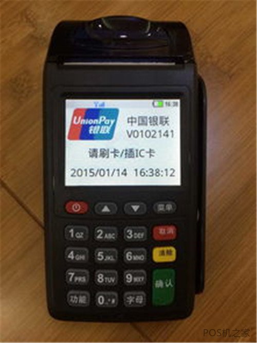 2、開(kāi)機(jī)過(guò)后,在POS機(jī)屏幕顯示的第一行最右邊有個(gè)“功能”鍵,按一下功能鍵。